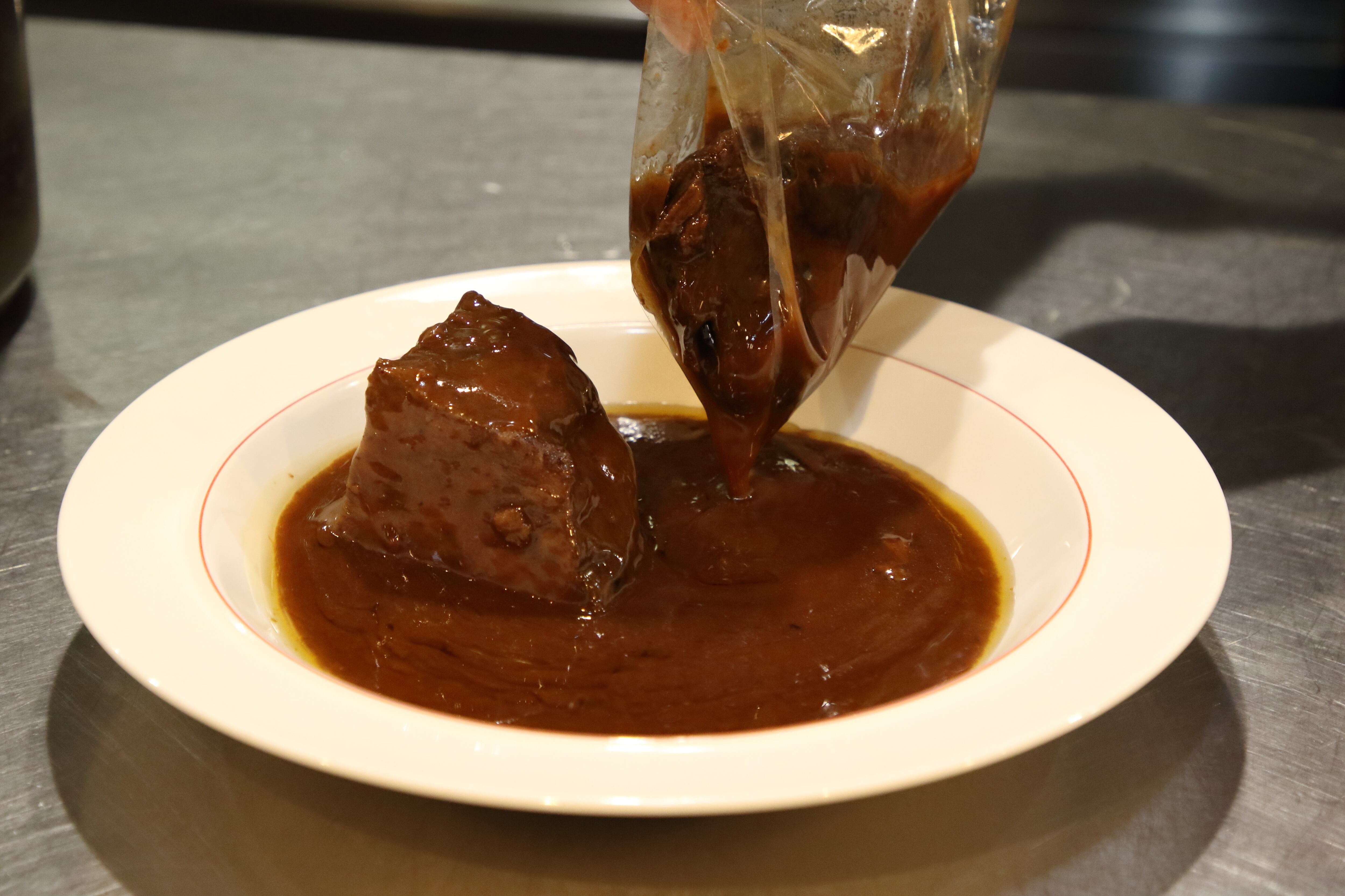 大きな黒毛和牛のホホ肉を贅沢に、赤ワインをブレンドした自家製デミグラスソースでじっくりと煮込みました。ホロっとほどけるようなやわらかなお肉がコクのある奥深いソースと絡まり、絶妙な一体感を生み出します。